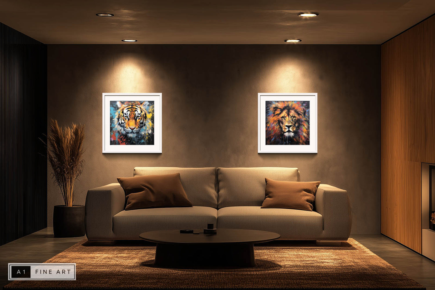 Zane Bruce's captivating artistry breathes life into his expressive animal portraits, where bursts of color and dynamic brushwork ignite the canvas. Each painting pulsates with the essence of the wild, inviting viewers to connect with the raw energy and emotion captured in every stroke.