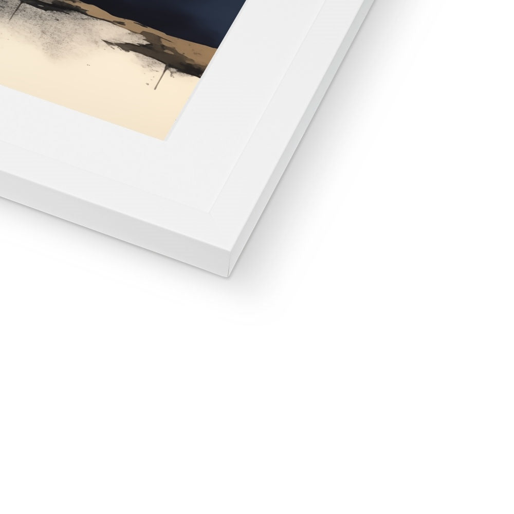 This Giclée print comes framed, crafted from top-tier wood, refined with sleek, minimalist lines, and adorned with a satin finish. Featuring an enduring off-white mount that resists discoloration and fading over time. Embracing a simple yet elegant design, it's printed on premium, textured fine art paper. Meticulously handmade by skilled picture framers, it boasts an FSC certification for its off-white mat/window mount. Delivered fully prepared for hanging.