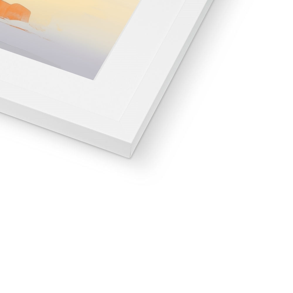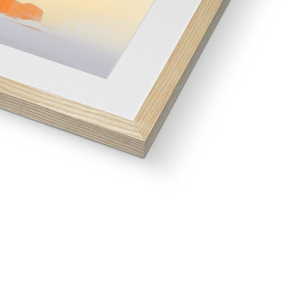 This Giclée print comes framed, crafted from top-tier wood, refined with sleek, minimalist lines, and adorned with a satin finish. Featuring an enduring off-white mount that resists discoloration and fading over time. Embracing a simple yet elegant design, it's printed on premium, textured fine art paper. Meticulously handmade by skilled picture framers, it boasts an FSC certification for its off-white mat/window mount. Delivered fully prepared for hanging.
