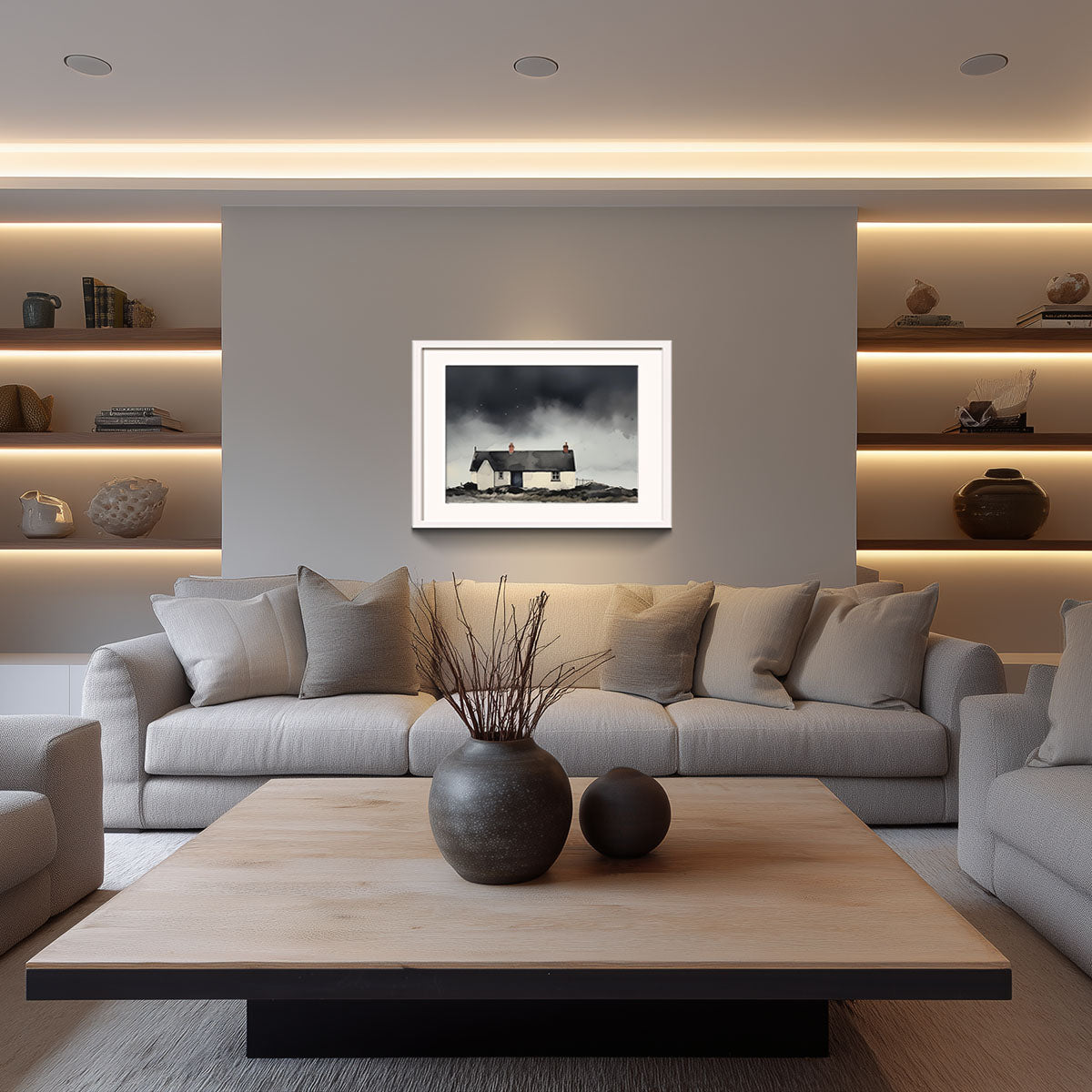 Discover the brooding and atmospheric Highland cottages through Andrew MacGregor's evocative paintings. Explore affordable prints featuring secluded cottages nestled in misty and haunting Highland settings.