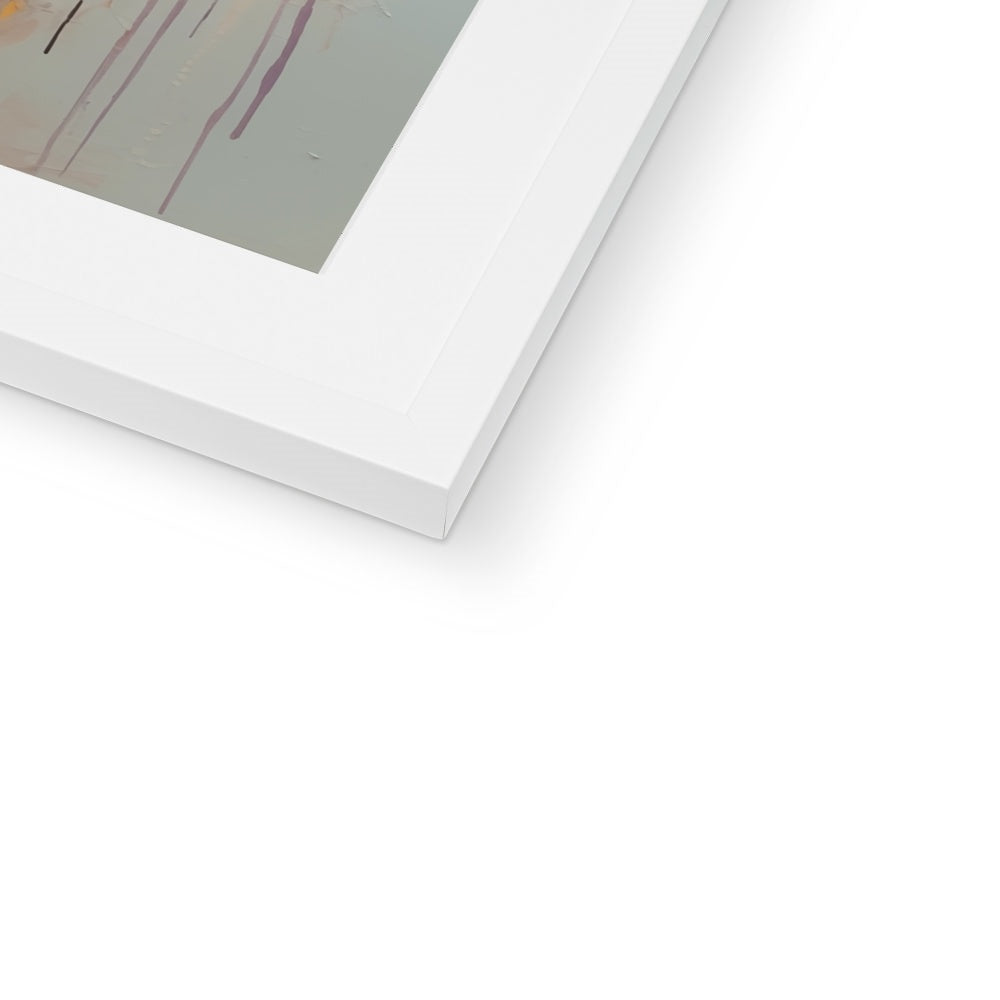 This Giclée print comes framed, crafted from top-tier wood, refined with sleek, minimalist lines, and adorned with a satin finish. Featuring an enduring off-white mount that resists discoloration and fading over time. Embracing a simple yet elegant design, it's printed on premium, textured fine art paper. Meticulously handmade by skilled picture framers, it boasts an FSC certification for its off-white mat/window mount. Delivered fully prepared for hanging.