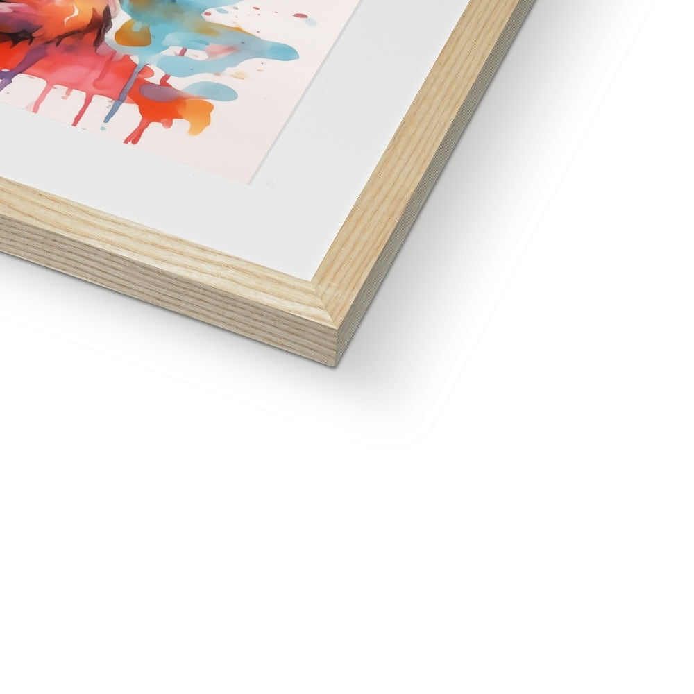 This Giclée print comes framed, crafted from top-tier wood, refined with sleek, minimalist lines, and adorned with a satin finish. Featuring an enduring off-white mount that resists discoloration and fading over time. Embracing a simple yet elegant design, it's printed on premium, textured fine art paper. Meticulously handmade by skilled picture framers, it boasts an FSC certification for its off-white mat/window mount. Delivered fully prepared for hanging.