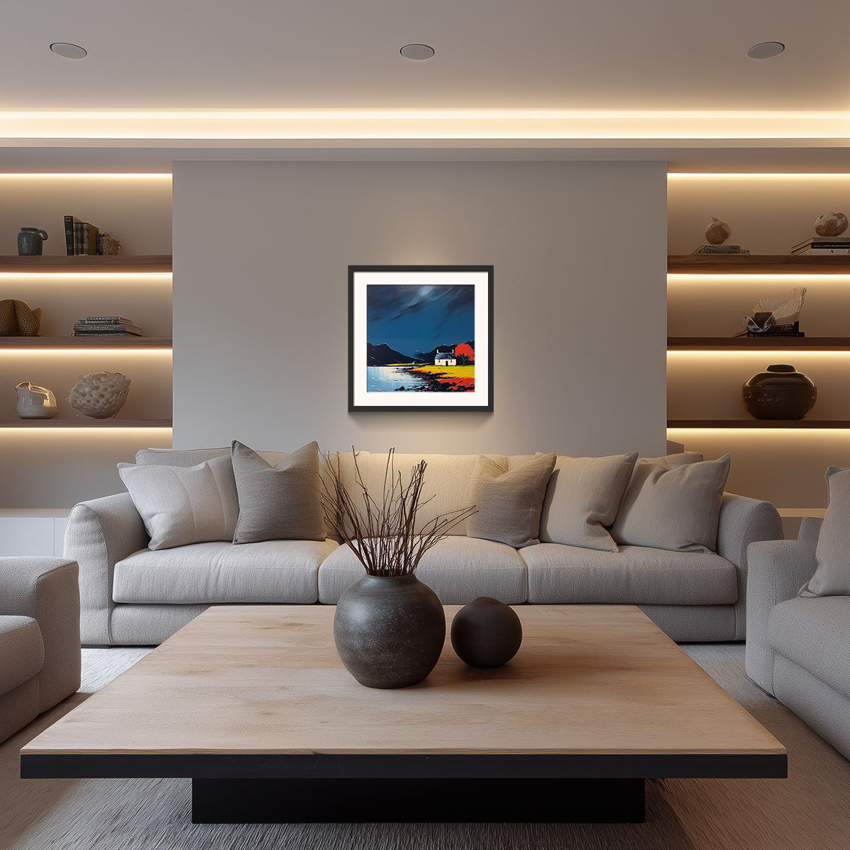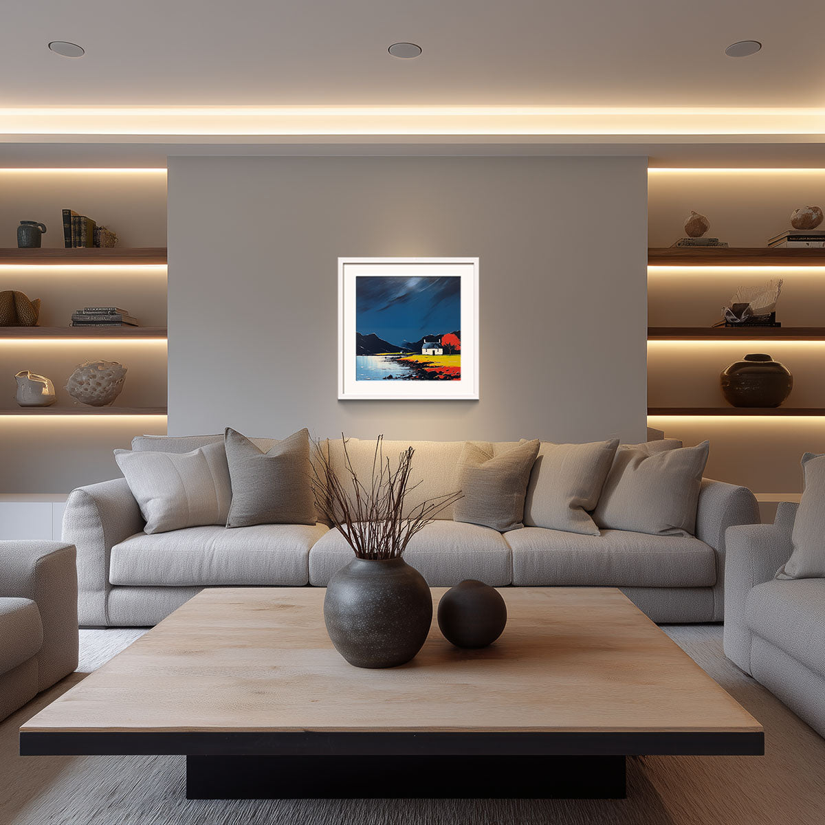 In the nocturnal world of Scottish landscapes, Fiona Young's paintings stand out, illuminating solitary cottages amidst the darkness with vibrant hues. Through her unique vision, she captures the enchanting mystery and solitude of the nighttime Scottish countryside.