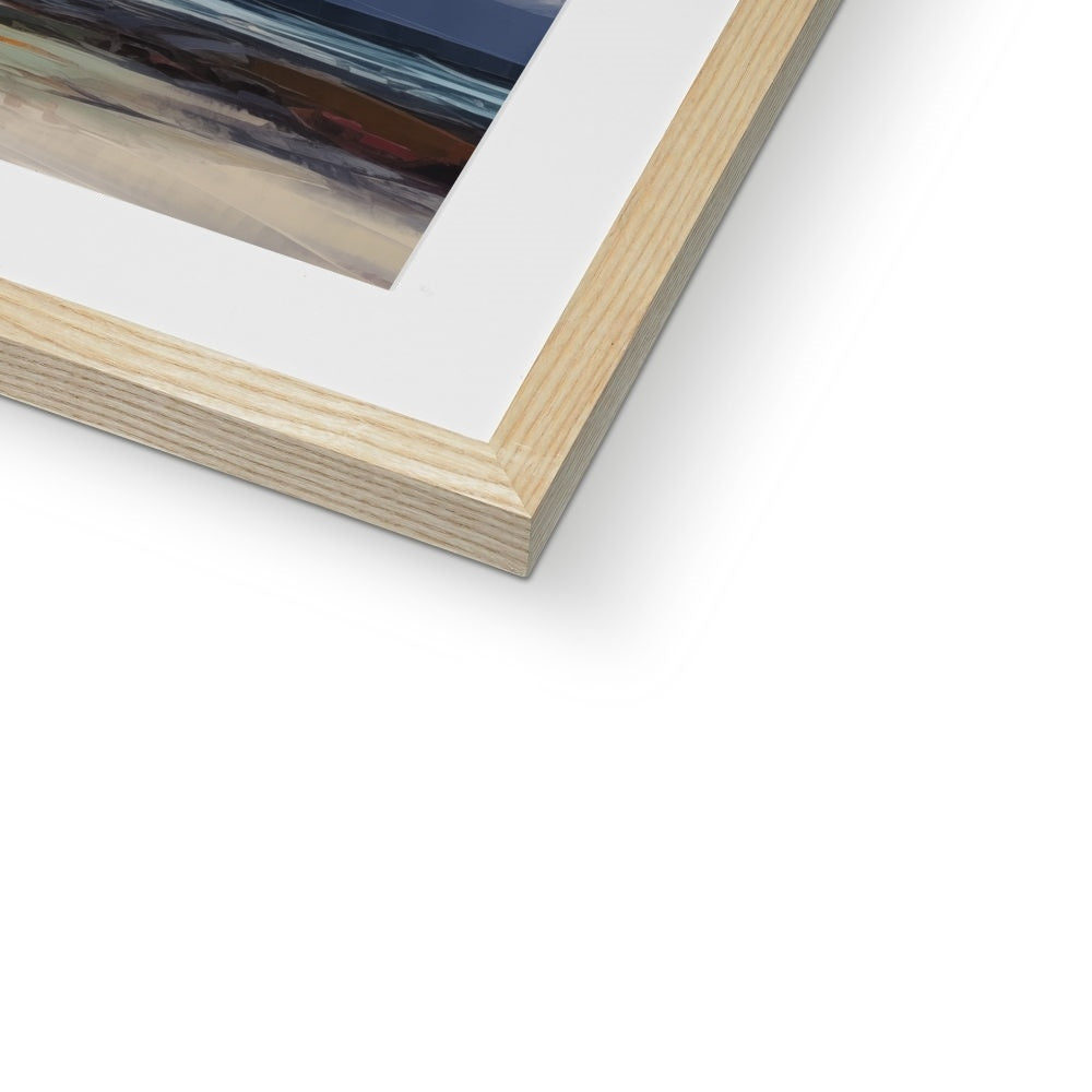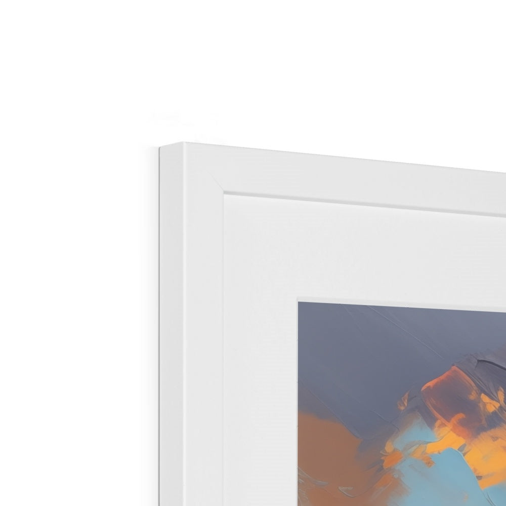 This Giclée print comes framed, crafted from top-tier wood, refined with sleek, minimalist lines, and adorned with a satin finish. Featuring an enduring off-white mount that resists discoloration and fading over time. Embracing a simple yet elegant design, it's printed on premium, textured fine art paper. Meticulously handmade by skilled picture framers, it boasts an FSC certification for its off-white mat/window mount. Delivered fully prepared for hanging.