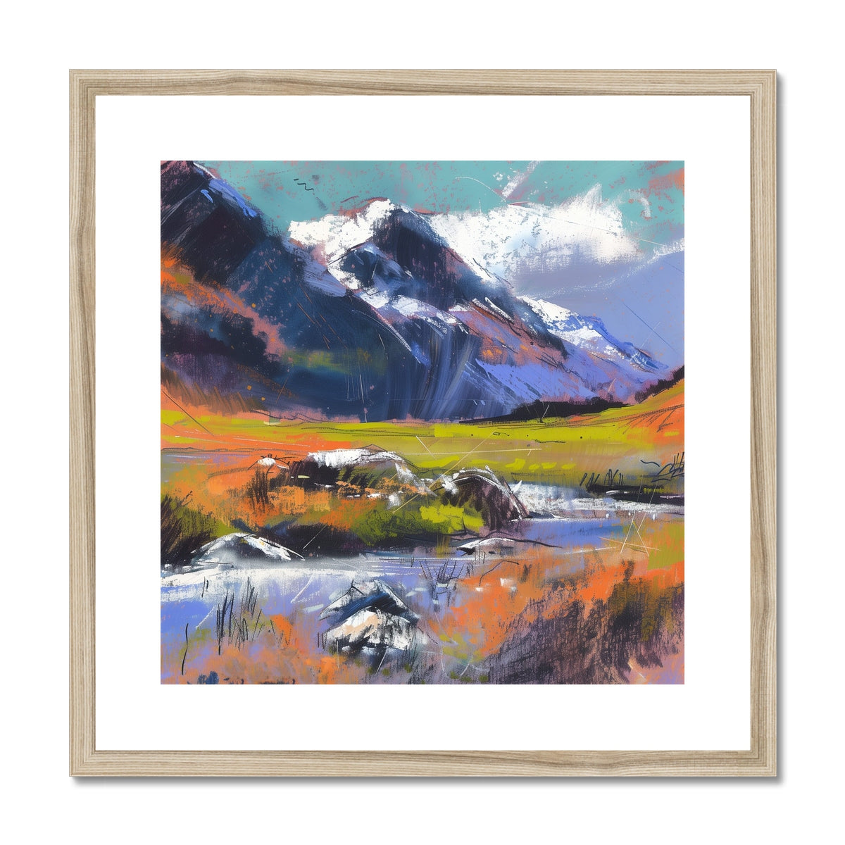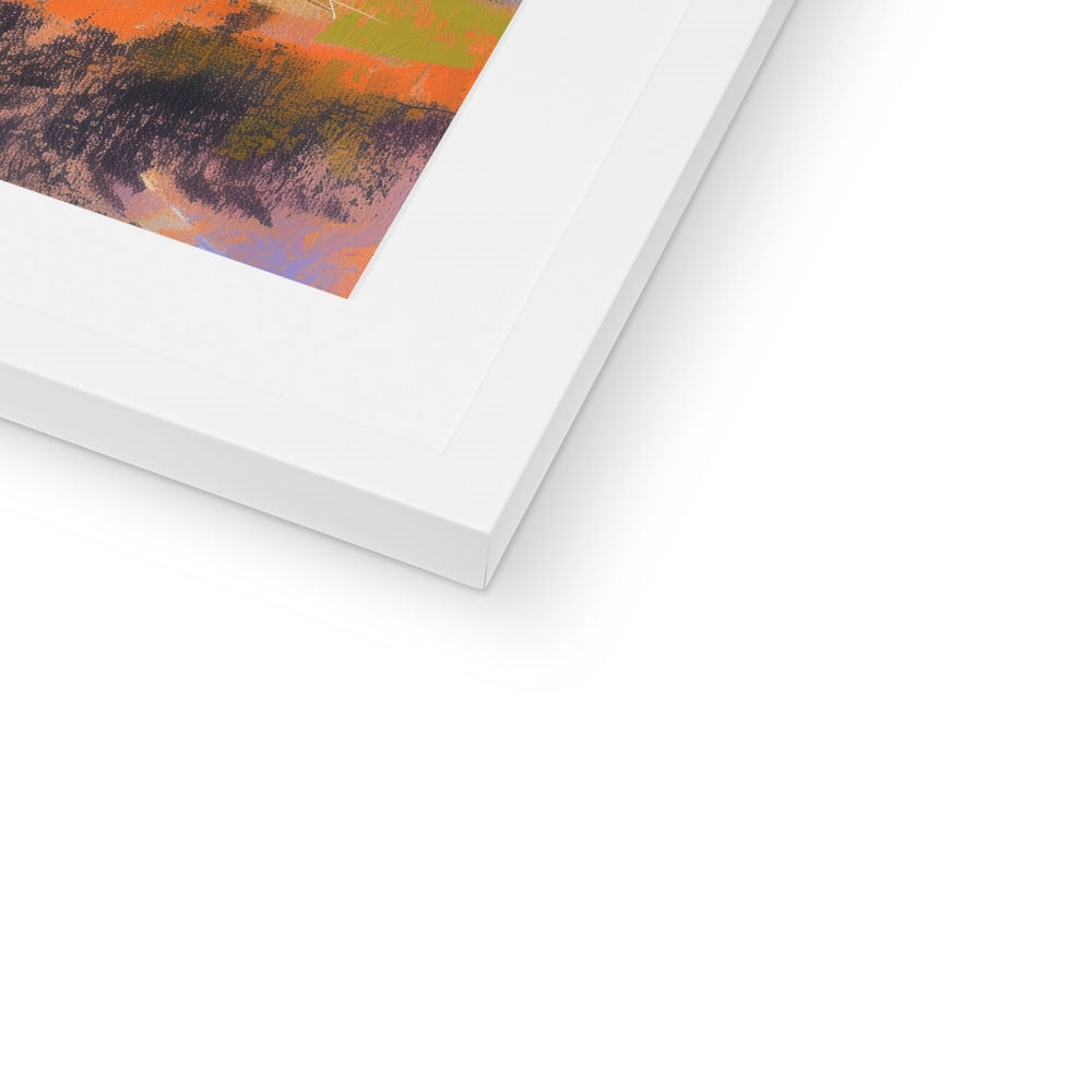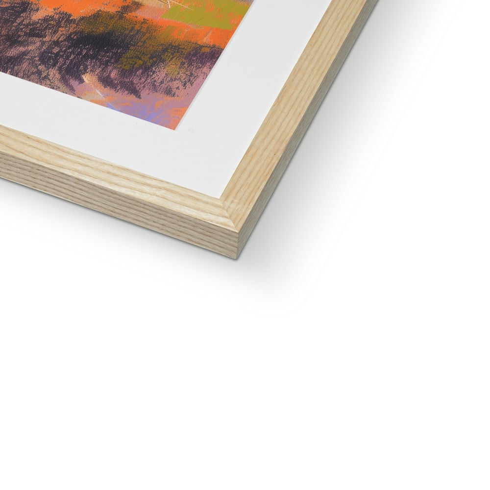 This Giclée print comes framed, crafted from top-tier wood, refined with sleek, minimalist lines, and adorned with a satin finish. Featuring an enduring off-white mount that resists discoloration and fading over time. Embracing a simple yet elegant design, it's printed on premium, textured fine art paper. Meticulously handmade by skilled picture framers, it boasts an FSC certification for its off-white mat/window mount. Delivered fully prepared for hanging.