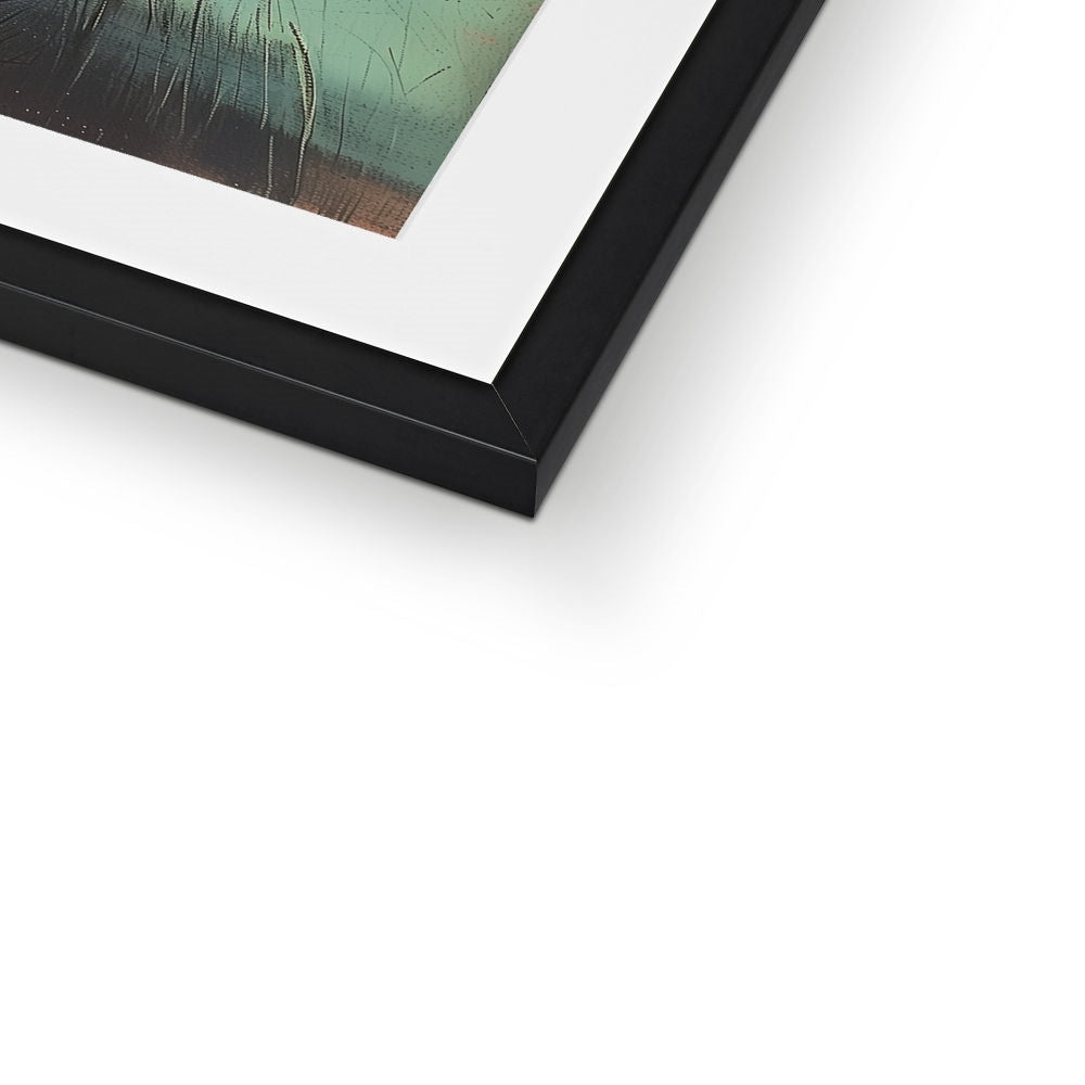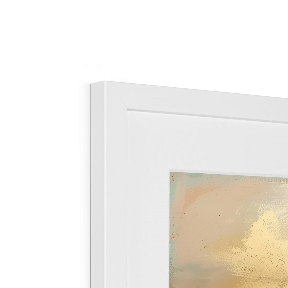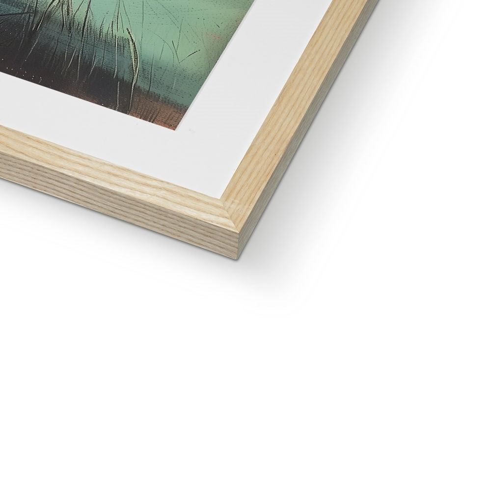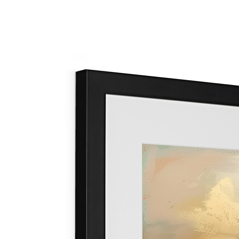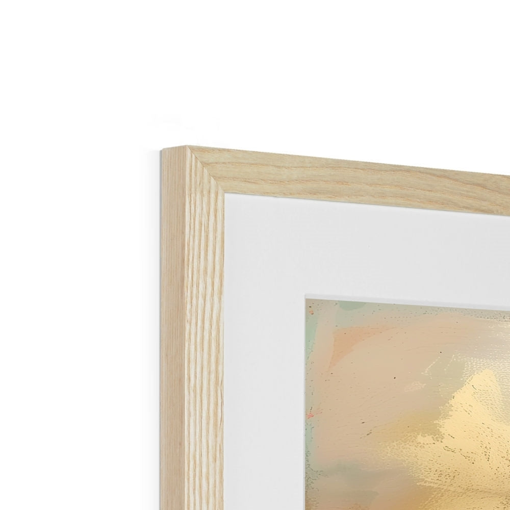 This Giclée print comes framed, crafted from top-tier wood, refined with sleek, minimalist lines, and adorned with a satin finish. Featuring an enduring off-white mount that resists discoloration and fading over time. Embracing a simple yet elegant design, it's printed on premium, textured fine art paper. Meticulously handmade by skilled picture framers, it boasts an FSC certification for its off-white mat/window mount. Delivered fully prepared for hanging.