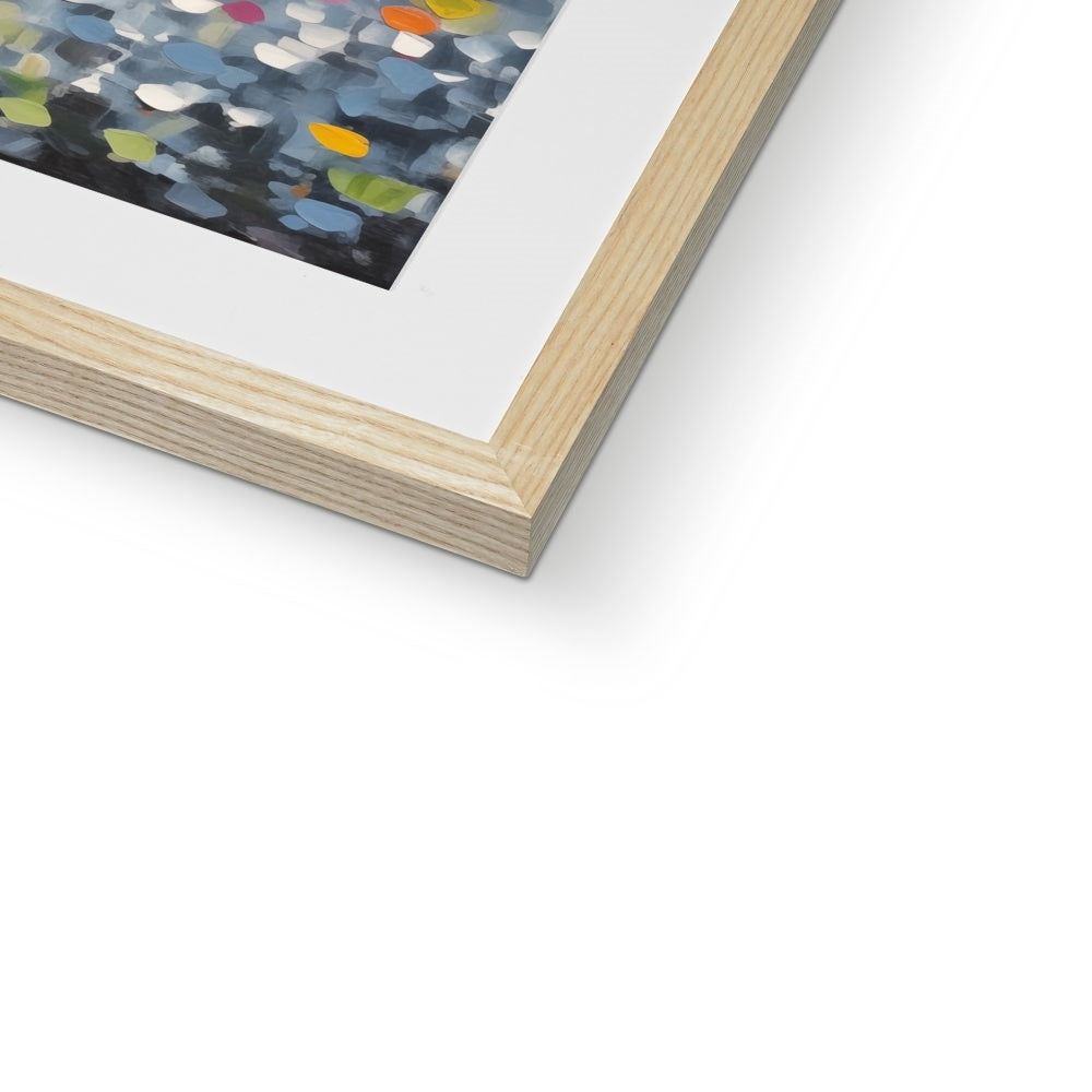 This Giclée print comes framed, crafted from top-tier wood, refined with sleek, minimalist lines, and adorned with a satin finish. Featuring an enduring off-white mount that resists discoloration and fading over time. Embracing a simple yet elegant design, it's printed on premium, textured fine art paper. Meticulously handmade by skilled picture framers, it boasts an FSC certification for its off-white mat/window mount. Delivered fully prepared for hanging.