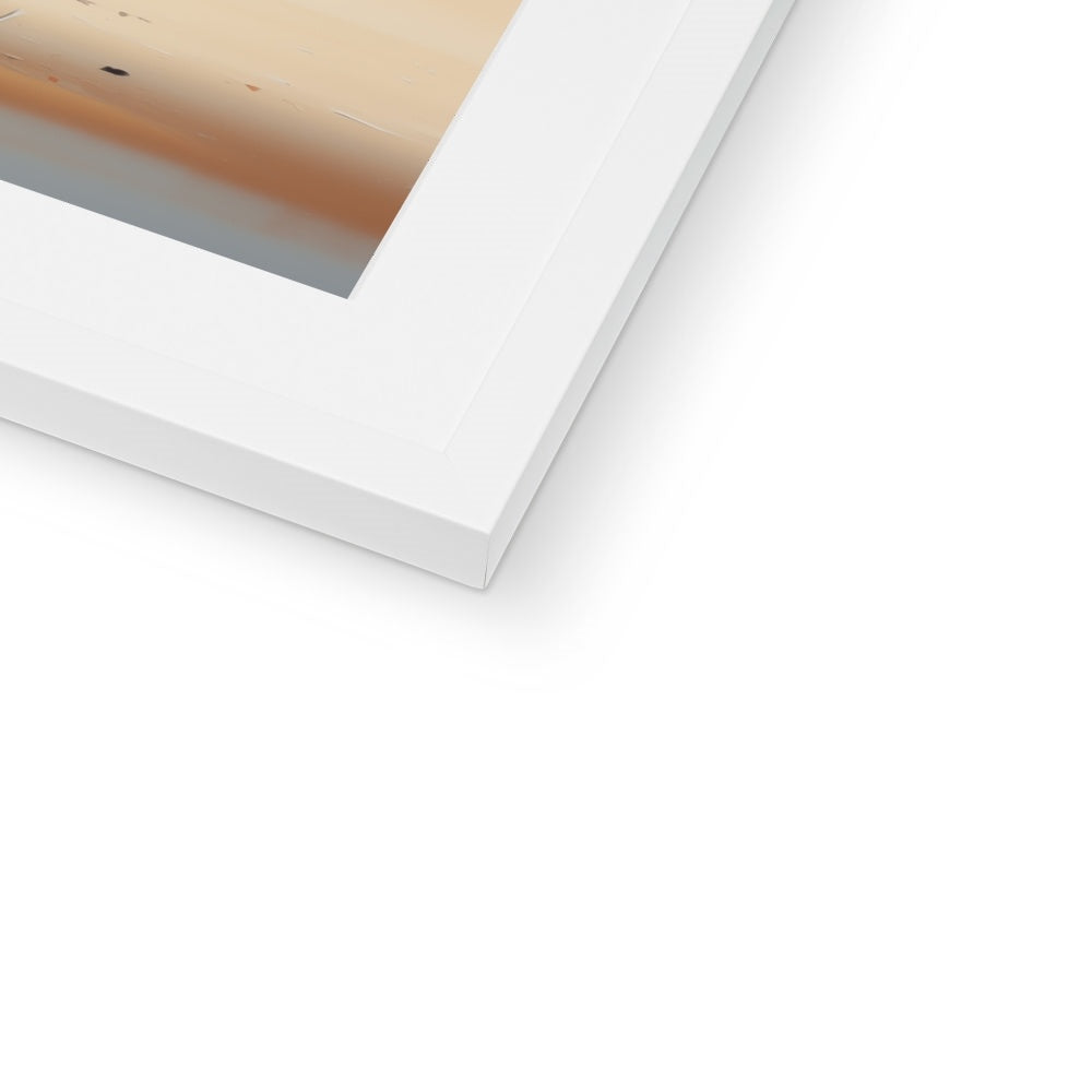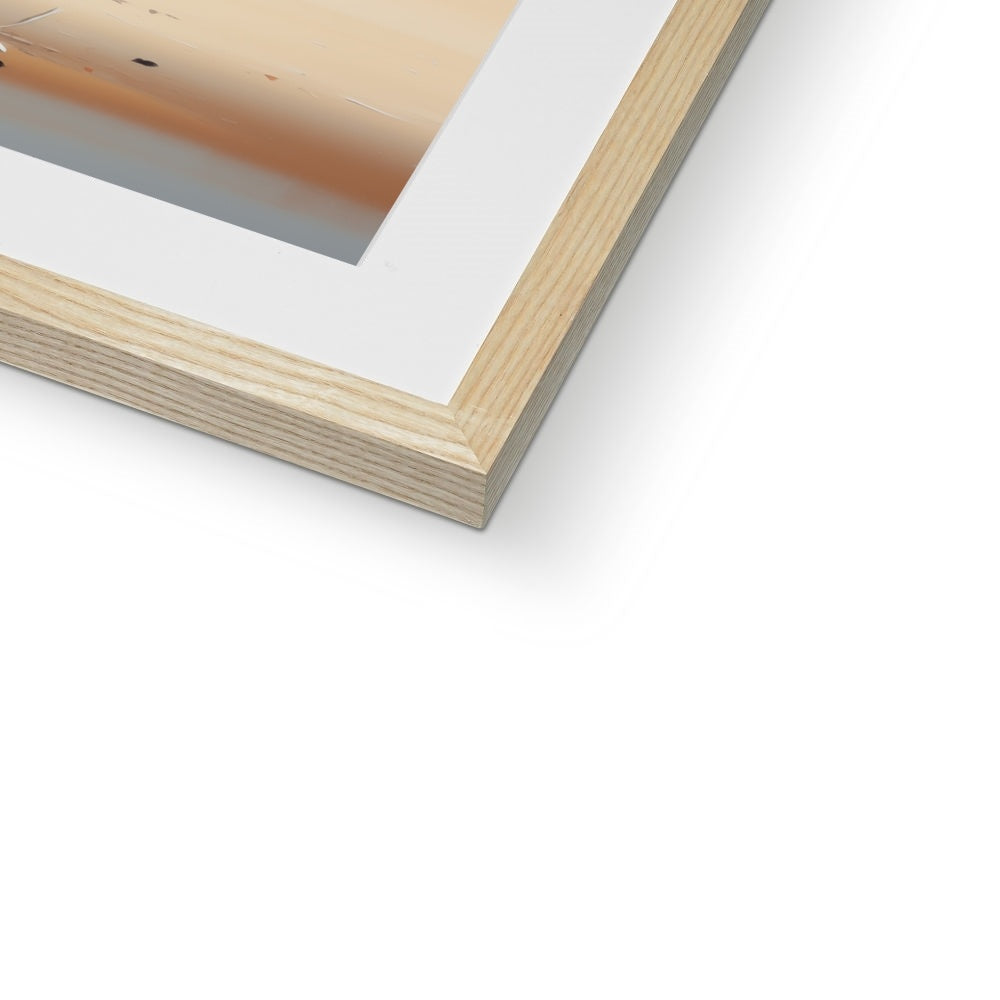 This Giclée print comes framed, crafted from top-tier wood, refined with sleek, minimalist lines, and adorned with a satin finish. Featuring an enduring off-white mount that resists discoloration and fading over time. Embracing a simple yet elegant design, it's printed on premium, textured fine art paper. Meticulously handmade by skilled picture framers, it boasts an FSC certification for its off-white mat/window mount. Delivered fully prepared for hanging.